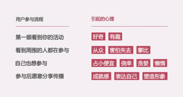 要想回答这个问题,首先要做的就是问自己:用户为什么要参加你做的这个活动?当你在问这个问题的时候,实际上是想知道:用户因为什么样的心理参加你这个活动?