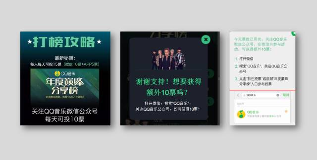 但这样的用户体验太奇怪了,在微信内推广活动没问题,但在QQ音乐推一个活动,还要关注微信公众号才可以参与,没法跟你好好玩耍了嘛。
