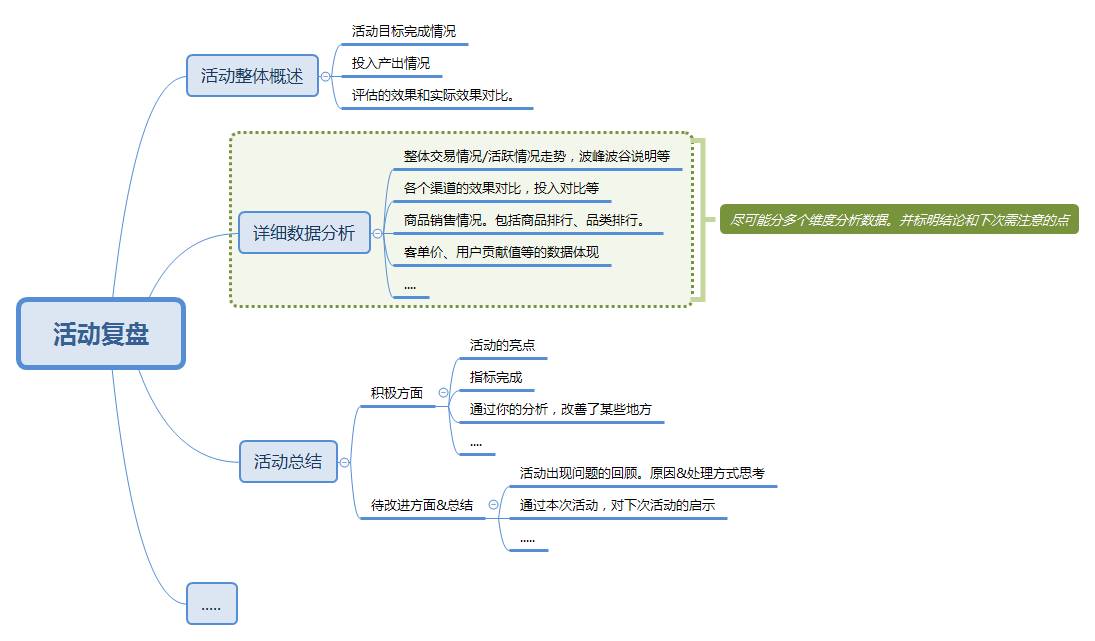 以下我整理的活动复盘大致需要考虑到的部分,可根据具体情况做加减法。