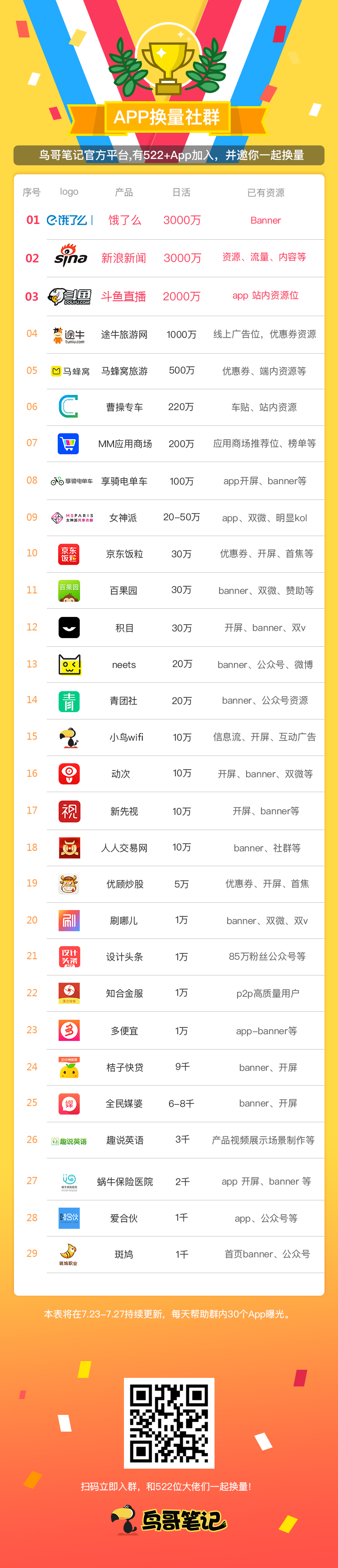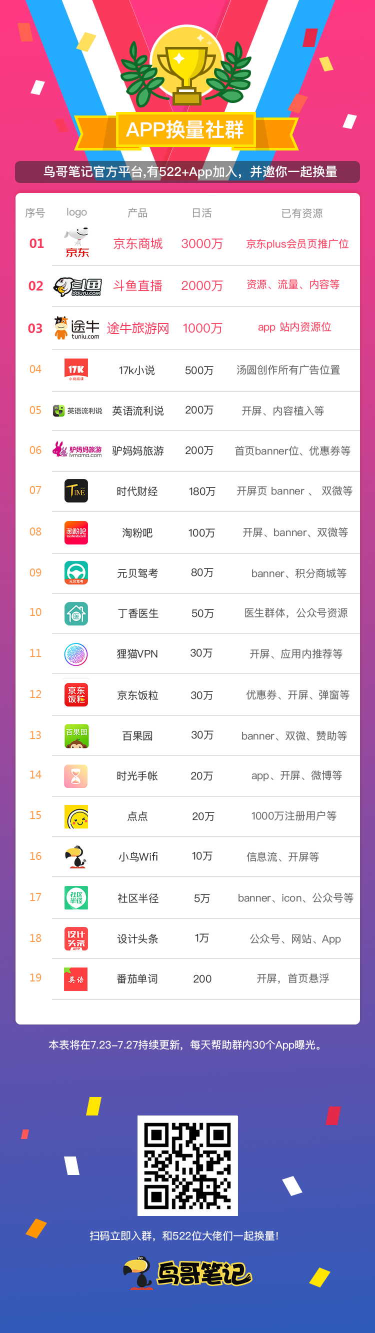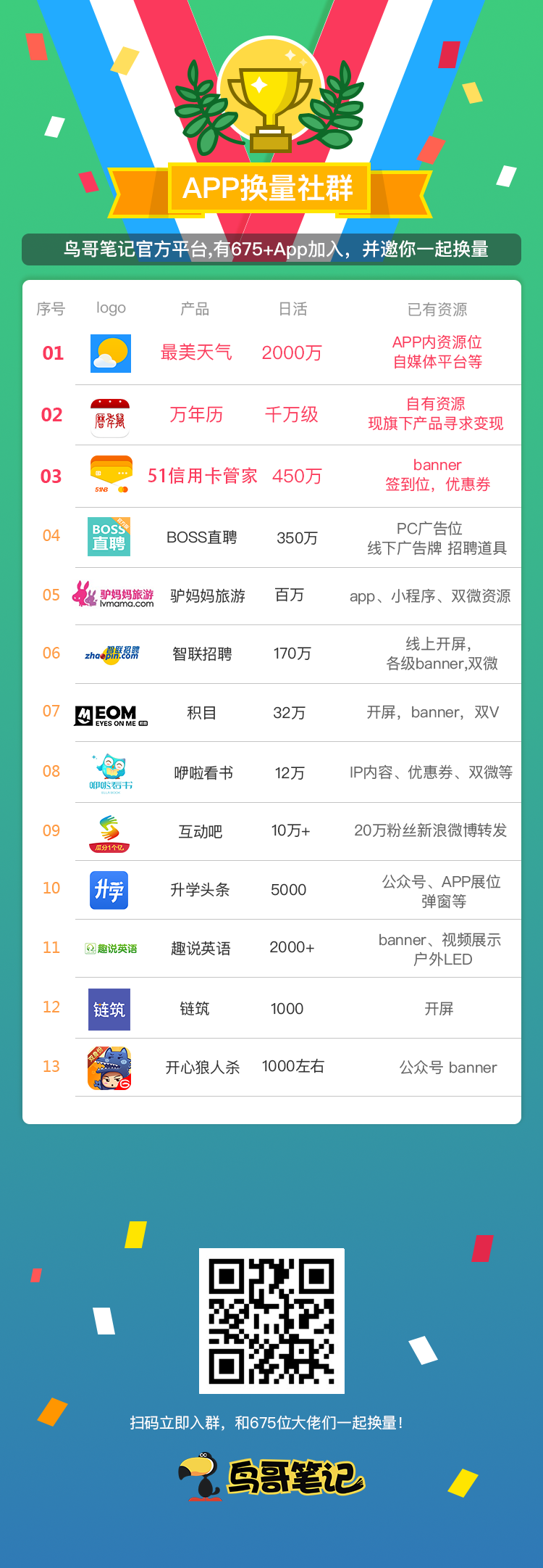 限时活动 | 鸟哥笔记App换量合作申请 第11期