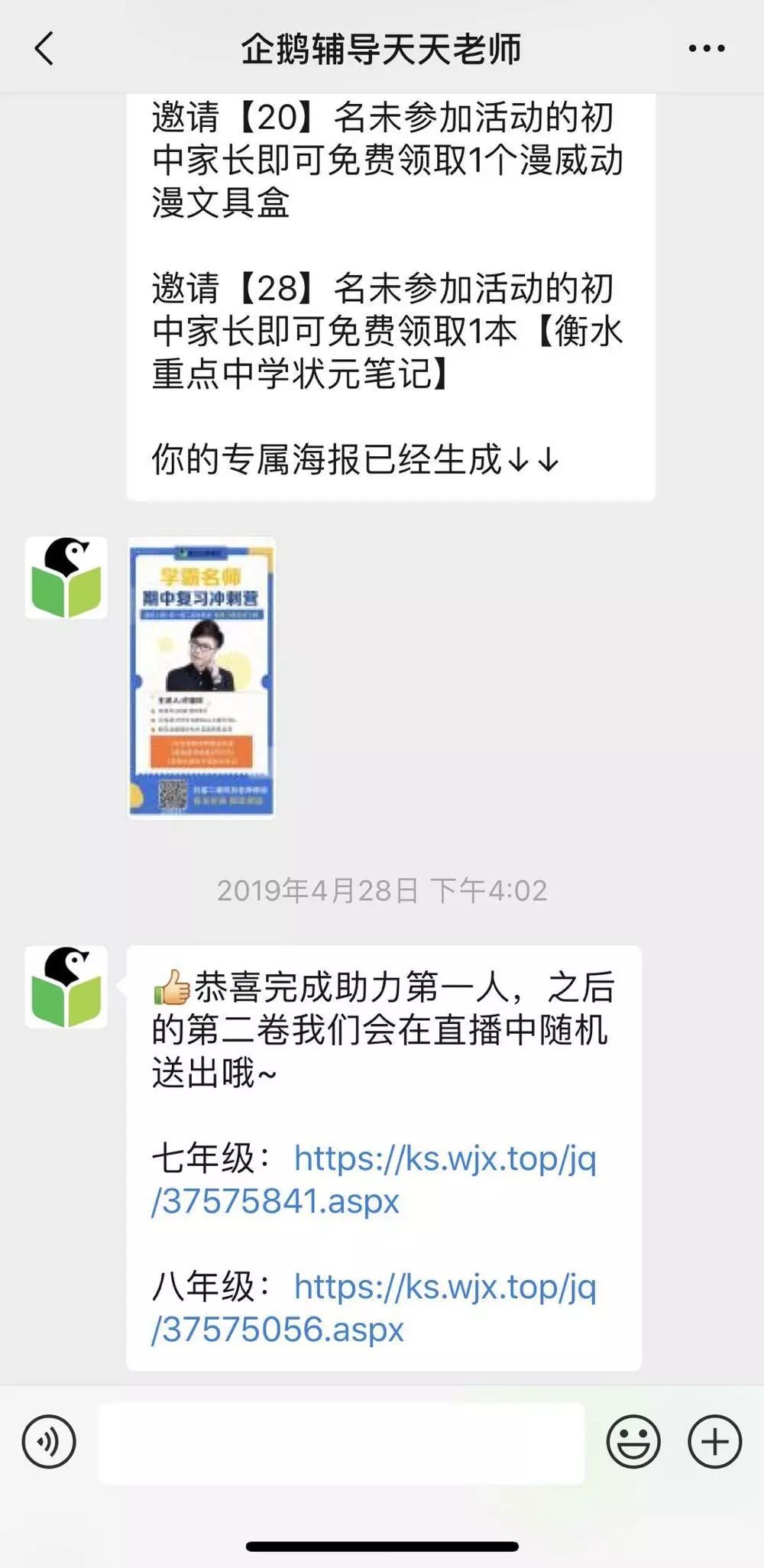 案例:企鹅辅导,其利用「服务号+个人号」作为初始流量池,吸引添加个人号,同时以不同福利作为诱饵,用助力邀请的裂变方式完成起盘,并导入微信群运营。
