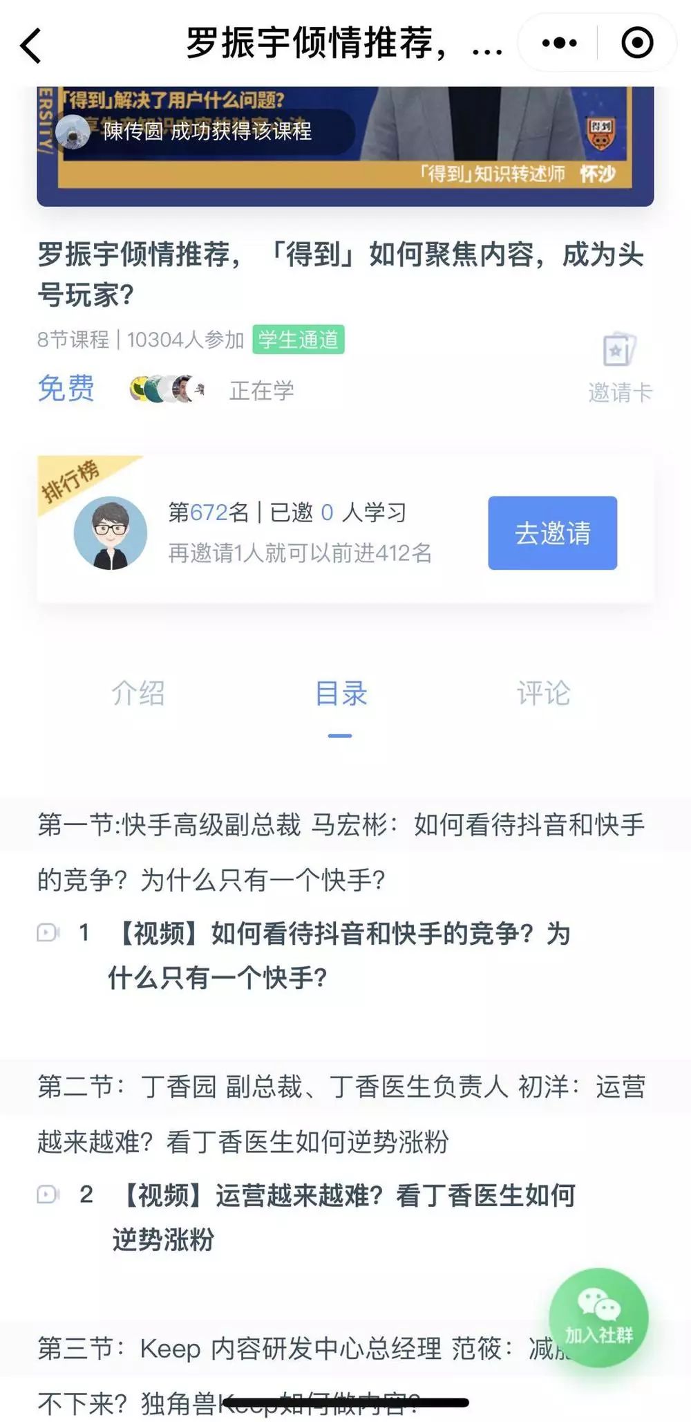 案例:某龙头教育机构,采用1元解锁第一节课的裂变模式,5天时间获取超10万的精准付费用户。