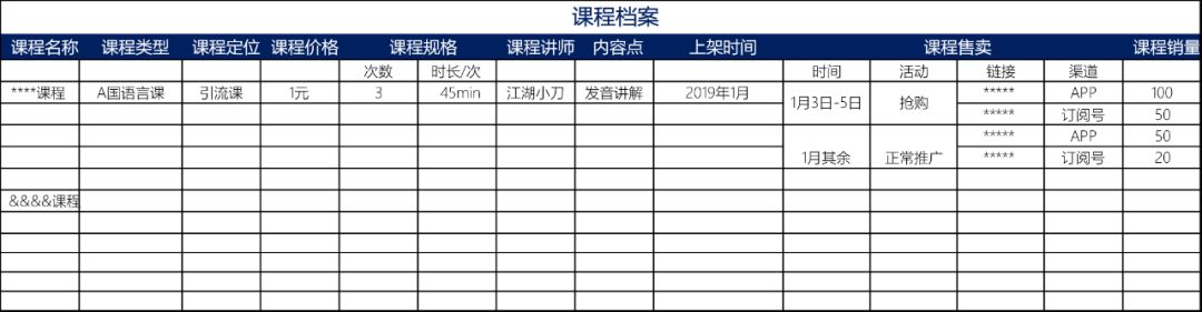 (这个表我临时搞出来的,不尽完善),大家可以根据各自平台和课程的需求建立属于自己的课程档案。