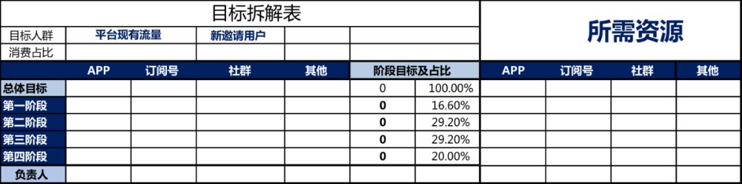 活动目标拆解,根据我们的活动策略和活动总目标,进行活动目标进一步的拆解。