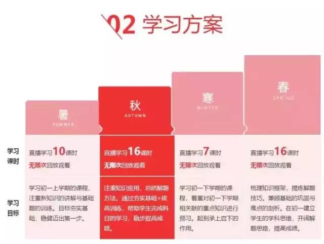 这一点可以学习某龙头机构,其打造的小学数学完整体系,并根据学习周期设定对应目标,层层升级,即保证内容的可续性,又保证能力的可续性。