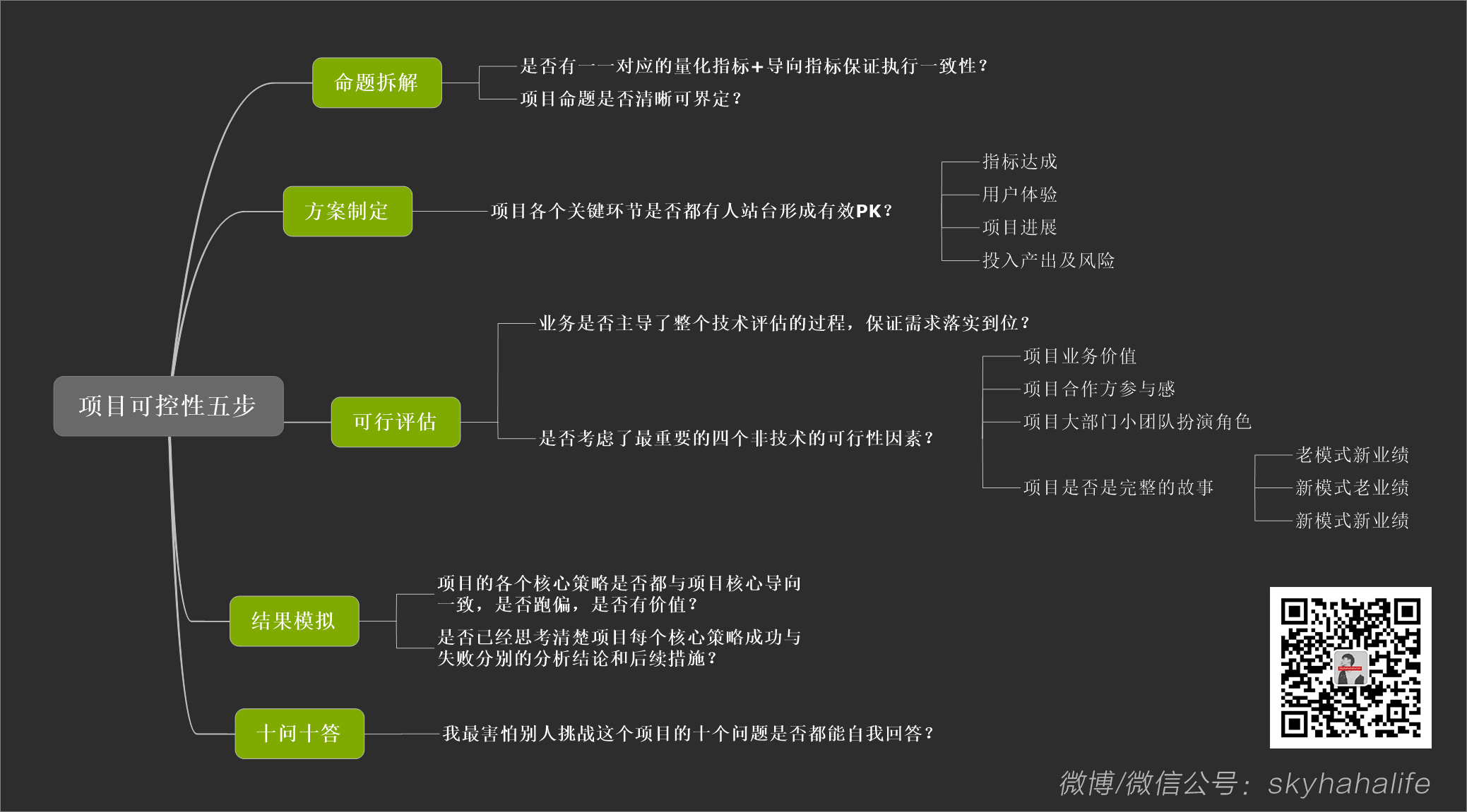 项目可行评估在我看来更重要的以及导致很多项目推进困难的点在于项目策略评估验证环节,大多数项目以一个好的idea就开始,但是推进到后面发现阻力重重或者推进非常困难,究其原因还在于一个项目的可行性评估不仅是技术层面可以实现,‘人’的层面可实现性往往更加重要,策略层面提前评估修正到位项目执行一帆风顺很多人会帮助你一起往前走。在现实的业务下或者说职场也好,不是一个好的idea就一定有价值,不是一个有价值的idea就应该在现在由你来做,不一定一个应该你来做的有价值的idea就能够顺利做下去。