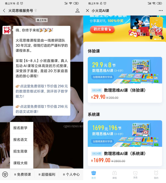 AI课是智能化的录播课,趣味性比较强。用AI引导学生学习和完成作业,并且匹配社群做转化复购。引流方式是29.9的体验课。