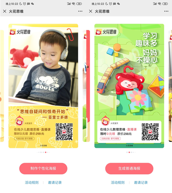 吸引注意力:拥有个性化海报和普通版海报两种,个性化海报可以自己传照片,当然了,如果传自己孩子的照片,会让转化up up。