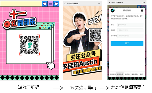 另外,无论是新用户还是老用户,在参与游戏前,都需要进行报名信息的填写。虽然从运营的链路上来讲,这样会导致用户参与游戏的门槛变高,链路被拉长,并不是很合理。但是运营工作之所以有趣就在于任何行为都不是一层不变的。在这个案例里,增加用户信息填写π爷是认为很有必要的,毕竟,对于一场福利力度特别大的活动而言,适当增加用户报名参与活动的门槛可以很有效的提升活动的隆重感,让用户觉得一旦中奖是非常荣幸的一件事。