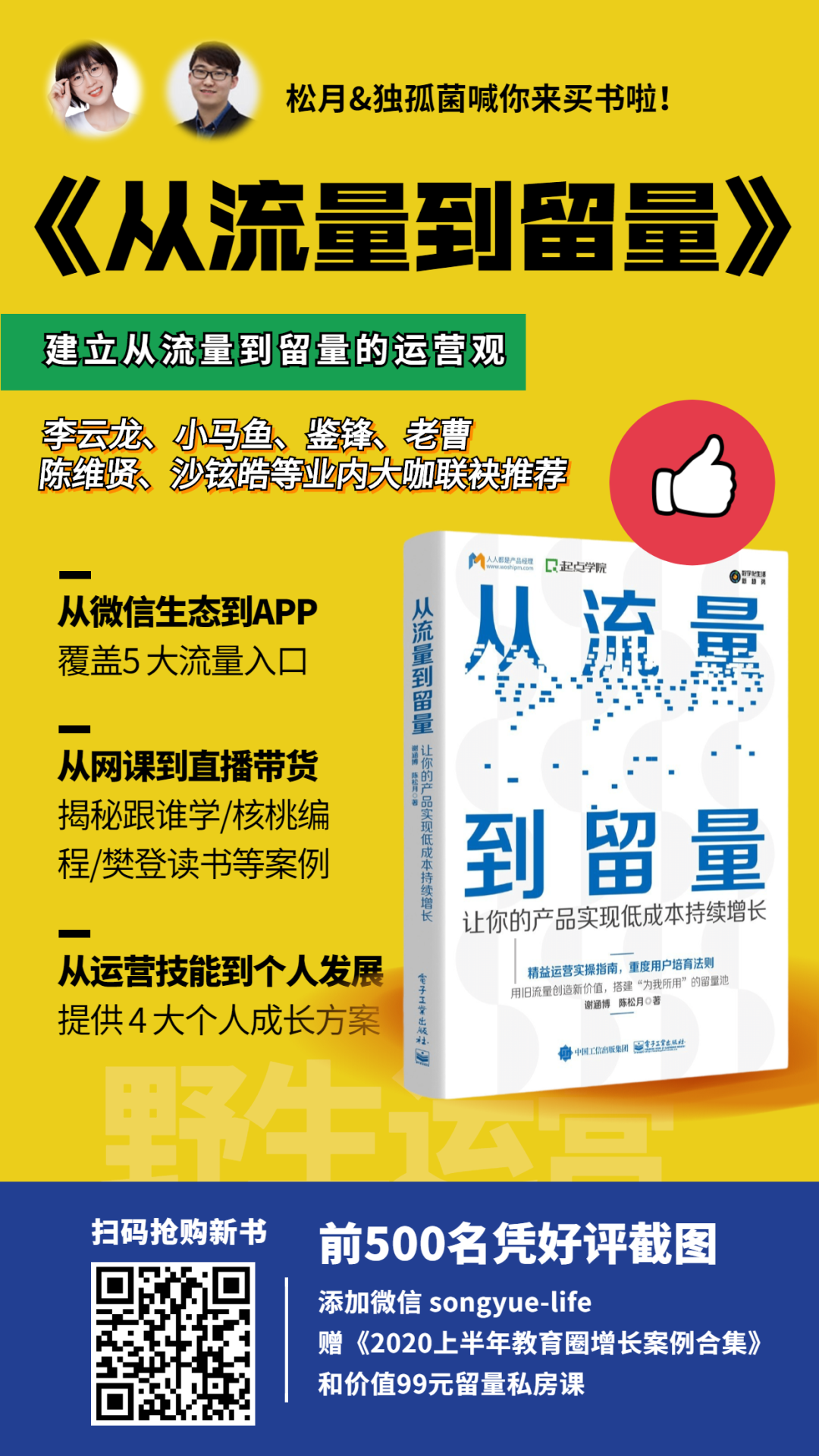 只看一个案例不过瘾?欢迎加入野生运营星球,有不定期快闪分享、教育圈一手资料、1V1答疑……等硬核干货,而且还能一次入手共计 2464 个增长案例拆解,就问你句,值不值?