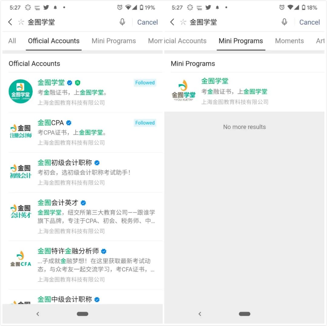 金囿学堂目前有公众号6个,小程序1个,App1个,为其实现内部流量的引入。