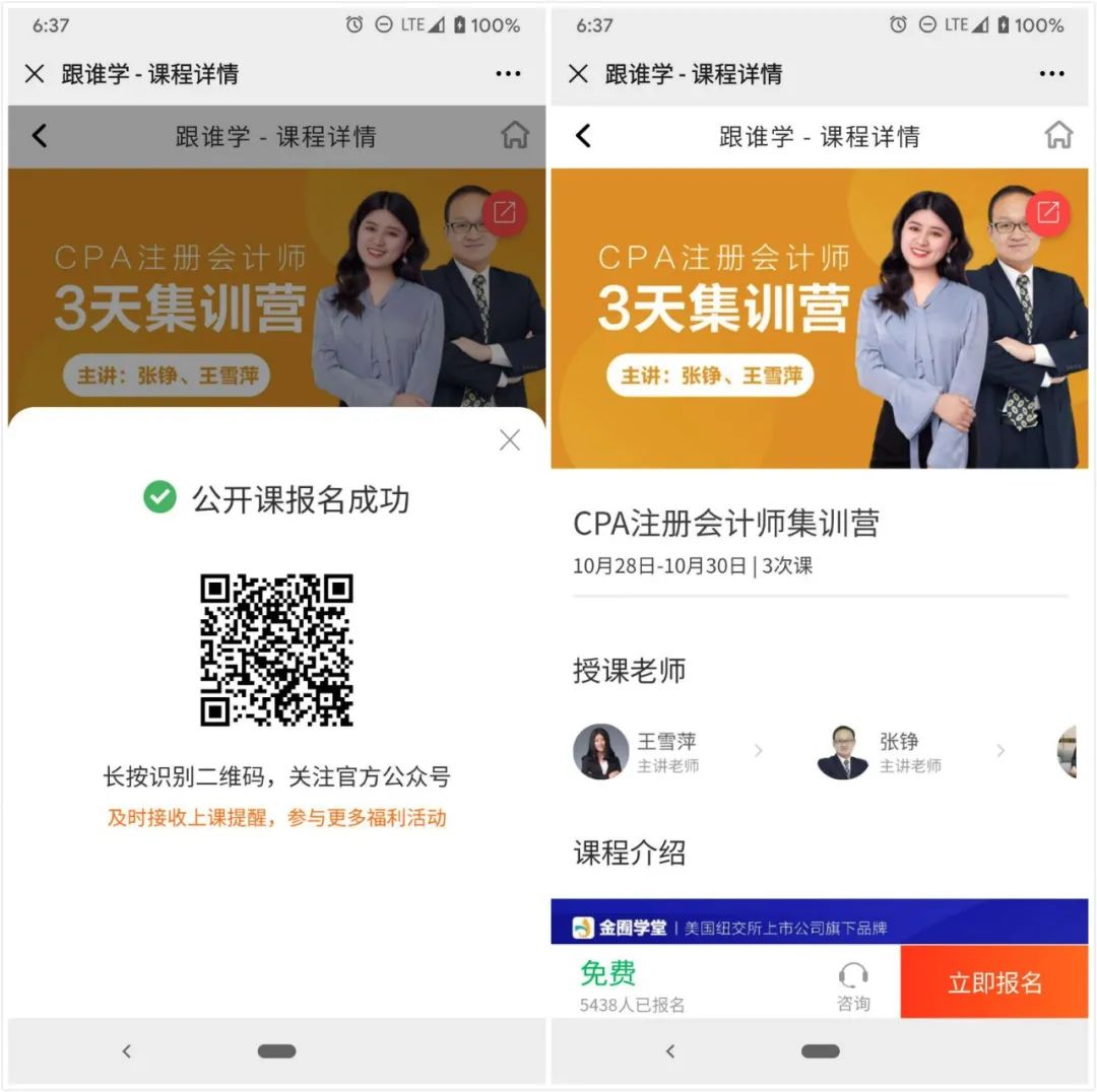 本篇分析的营销活动是其10月28日开始的CPA三天训练营,其实就是三天每天一次的体验课程,通过直播的形式引流转化。