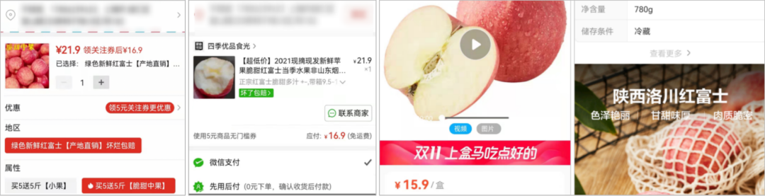 在此基础上,部分店家还会发放 5 ~ 10 元的优惠券;这样一来,一斤在超市要卖到 10 元左右的红富士大果,可能只要 1 ~ 3 元,仅是市售价格的 20%。