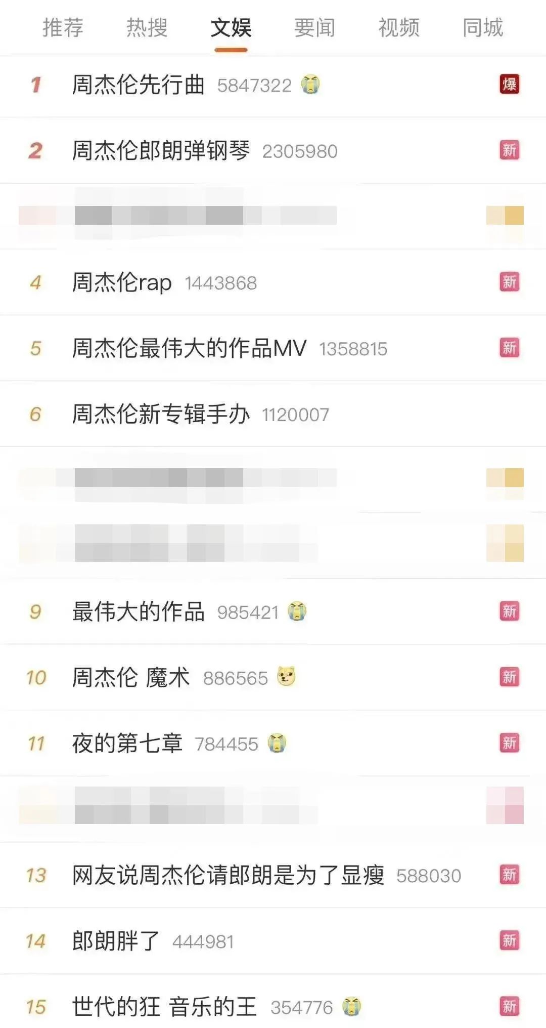 7月6日中午12点,周杰伦暌违6年发布新专辑同名先行曲《最伟大的作品》,音源及MV甫一上线,便受到了大面积的关注和讨论。除了#周杰伦先行曲#话题迅速爆火,登上热搜榜单第一,周杰伦本人、MV中的画面、专辑周边、先前作品等内容纷纷被网友摆上台面,相关话题实时屠榜,几乎包揽文娱热搜榜前十五位。