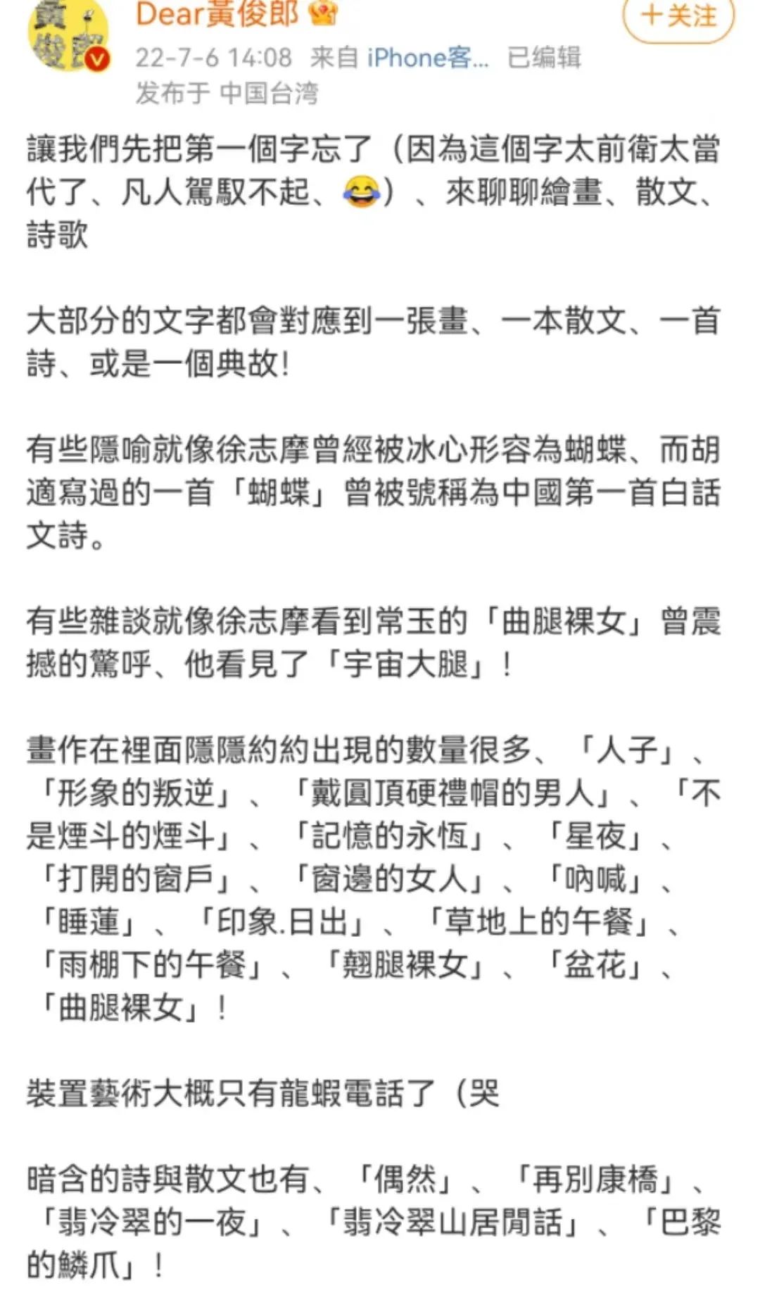 作词人黄俊郎在微博中为大众细心总结了MV中出现的众多线索,从钢琴演奏到艺术家的“重现”,从《印象·日出》、《星夜》、《草地上的午餐》到《再别康桥》、《翡冷翠的一夜》,歌曲融合了过往时代中最伟大的诗歌、画作、散文等著作,配以复杂的编曲和弦,将西方古典艺术以流行音乐的口吻表述出来,彰显出作者强大的音乐品味。