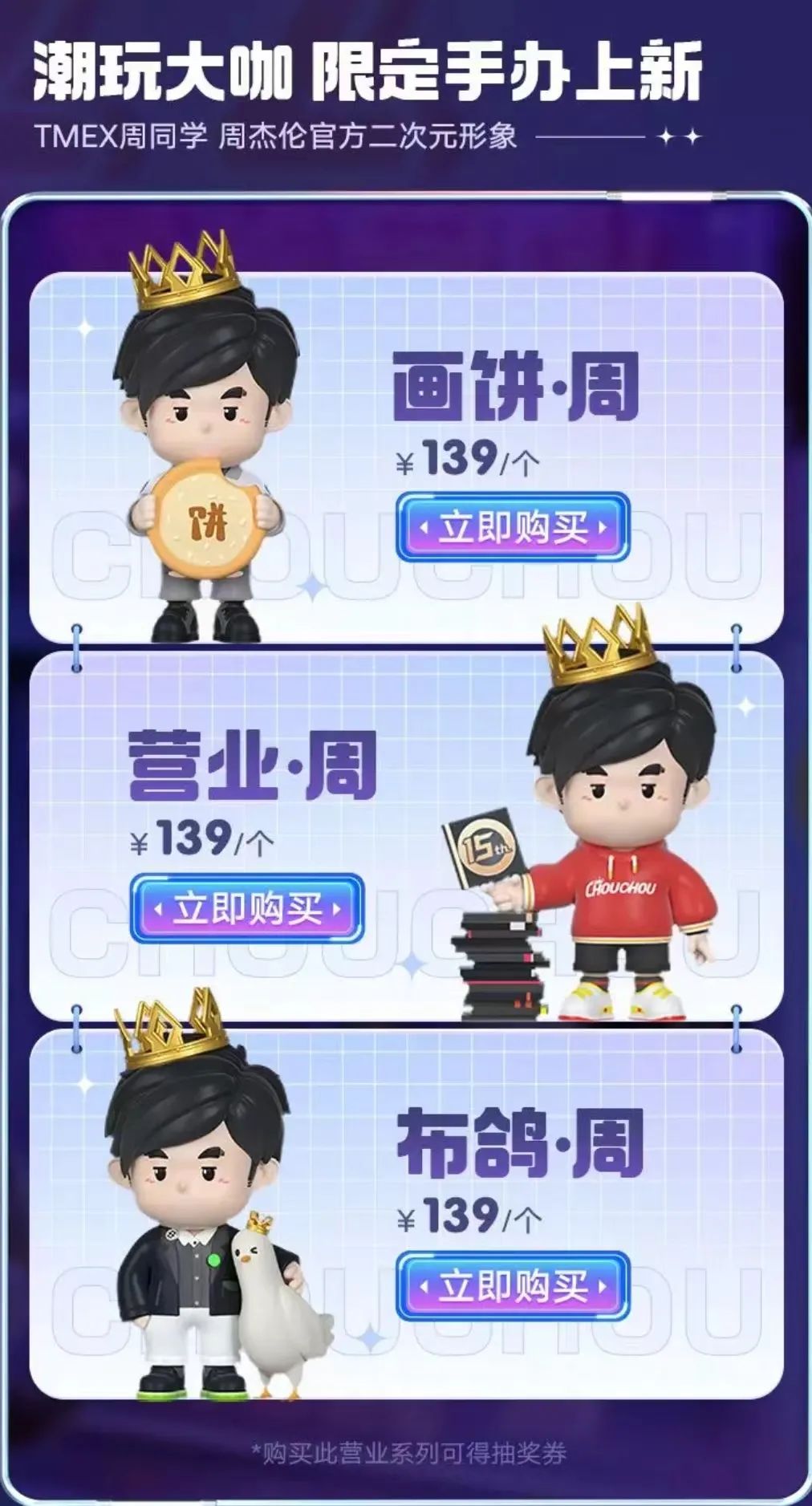 在此基础上,QQ音乐还拥有周杰伦定制周边的贩售权。新歌发布当天,QQ音乐同步上线周杰伦新专辑系列全新定制周边,包括手办‘画饼·周’‘营业·周’‘布鸽·周’等一系列产品,如此“组合式销售”也进一步拉动了专辑预售量的增长。