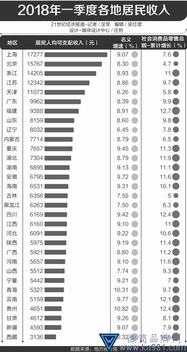 近日,国家统计局和地方统计局陆续公布了2018一季度31省市的居民人均可支配收入。PT1