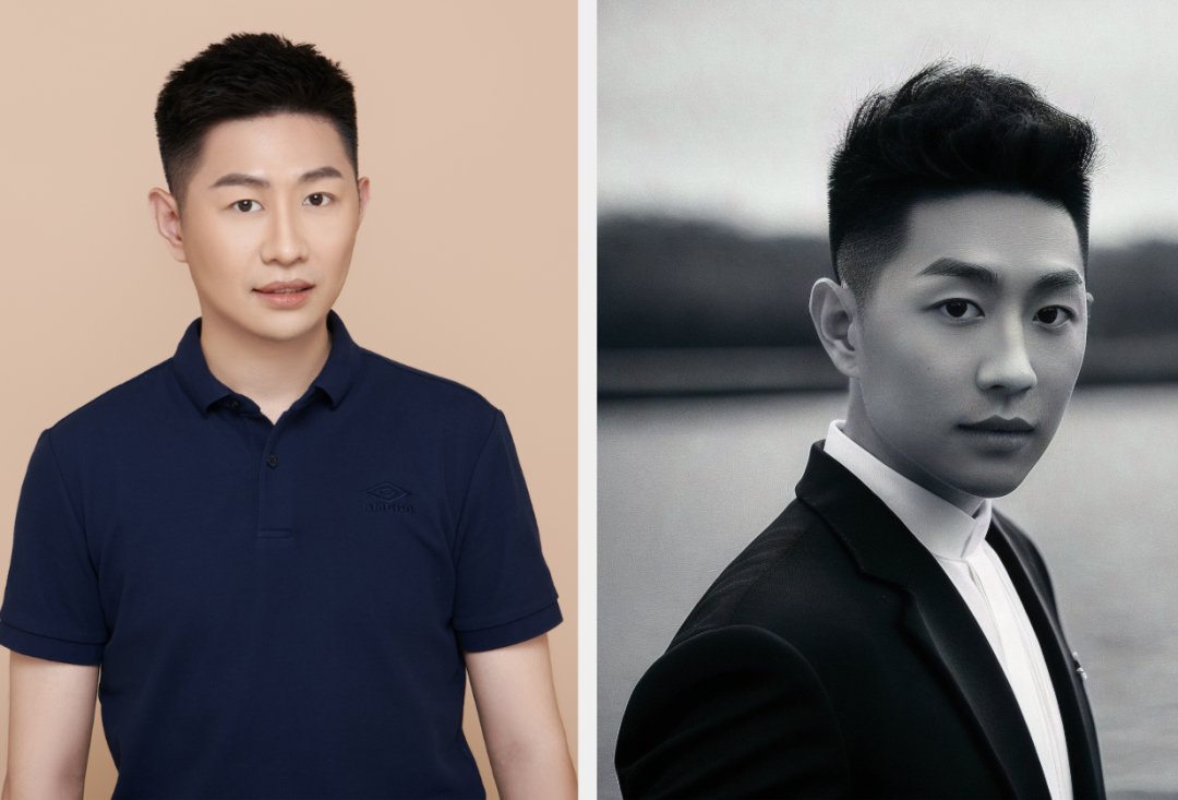 我亲自试了一下,左边是我在海马体去年拍摄的形象照,右边是AI生成的数字分身,你们觉得如何?