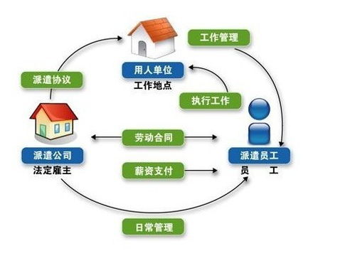 主要账务处理:1、收到用工单位转来的工资借:现金(银行存款) 贷:其他应收款(其他应付款)2、代发工资支付借:其他应收款(其他应付款) 贷:现金(银行存款)3、收到劳务费,开具发票借:银行存款贷:主营业务收入4、计提劳务派遣人员工资及企业承担的社保和住房公积金借:主营业务成本贷:应付职工薪酬(薪金、社保、住房公积金)5、支付派遣人员的工资借:应付职工薪酬(薪金)贷:库存现金6、其他应付款(个人承担的社保和公积金、应交税费、缴纳社保和公积金)借:应付职工薪酬(社保、住房公积金、其他应付款——个人承担的社保和公积金)贷:银行存款7、计提营业税和附加税费借:营业税金及附加贷:应交税费(营业税、城建税、教育费附加)扩展资料:劳务派遣又称人才派遣、人才租赁、劳动派遣、劳动力租赁,是指由劳务派遣机构与派遣劳工订立劳动合同,由要派企业(实际用工单位)向派遣劳工给付劳务报酬,劳动合同关系存在于劳务派遣机构与派遣劳工之间,但劳动力给付的事实则发生于派遣劳工与要派企业(实际用工单位)之间。一般经省市劳动人事部门厅批准可成立专业的人力资源服务公司,主营业务有人力资源外包,人力资源派遣以及通过招聘网为 企业提供人才的供应信息,为个人提供求职登记,推荐工作;同时也为企业提供代理招聘会的举办,法律法规的咨询等工作。