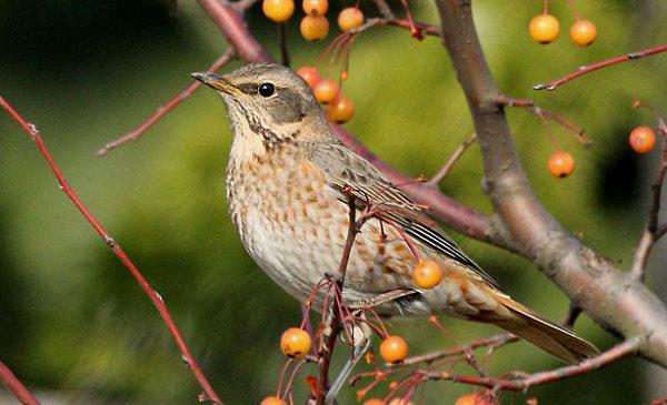 红尾鸫:别名,为雀形目、鹟科、鸫属鸟类,原产于欧洲及亚洲北部地区,我国北部地区也有分布。与斑鸫非常相似,区别在于:1.红尾鸫背部和头部灰褐色,带有锈色,腹白。雄鸟脸、胸、腰红棕色,两胁和臀部具红棕色点斑,喉部常具有黑色点斑。雌鸟似雄鸟,但体色更浅,胸部棕色不如雄鸟密集,髭纹更清晰。2.斑鸫上体深褐色,具黑色点斑,两翼和腰棕色,喉白,白色眉纹明显。雄鸟脸下方白色,而雌鸟脸下方具黑色与白色。下体白具黑色点斑,在胸部和两胁形成黑带,翼下红棕色。