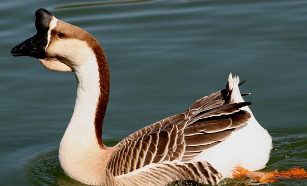 头体长80-93cm,重2.8-4.3kg。成鸟从额基、头顶到后颈正中央暗棕褐色,额基与嘴之间有一条棕白色细纹,将嘴和额截然分开。头侧、颏和喉淡棕褐色,嘴裂基部有两条棕褐色颚纹。背、肩、腰、翅上覆羽和三级飞羽暗灰褐色,羽缘较淡或较白,形成明显的白色斑纹或横纹。嘴黑色,虹膜红褐色或金黄色,跗蹠橙黄色或肉红色。善游泳,飞行力亦强,但飞行时显得有些笨重。