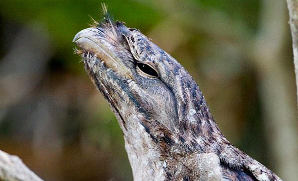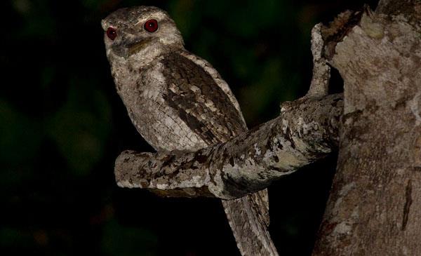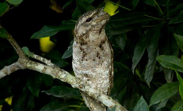 口裂极大,如同蛙口,相貌奇趣,呆萌可爱,是非常另类的奇鸟。它是自然界的拟态大师,善于伪装,喜欢选择老树栖息,体色及斑纹与树皮、苔藓的颜色融为一体。平时纹丝不动、眼睛微闭、嘴尖向上,看就像树枝,很难被发现。
