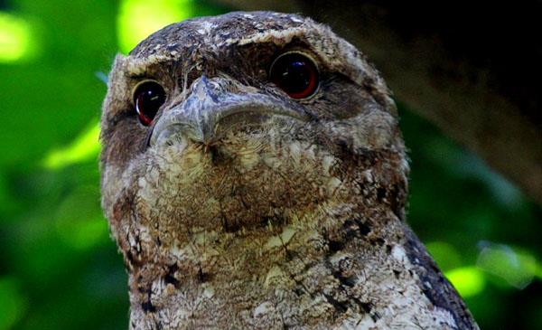 茶色蟆口鸱:别名,为夜鹰目、蟆口鸱科、蟆口鸱属鸟类,原产于大洋洲澳大利亚中部和西部,包括塔斯马尼亚、新几内亚。栖息于热带森林、温带森林与灌丛地带。