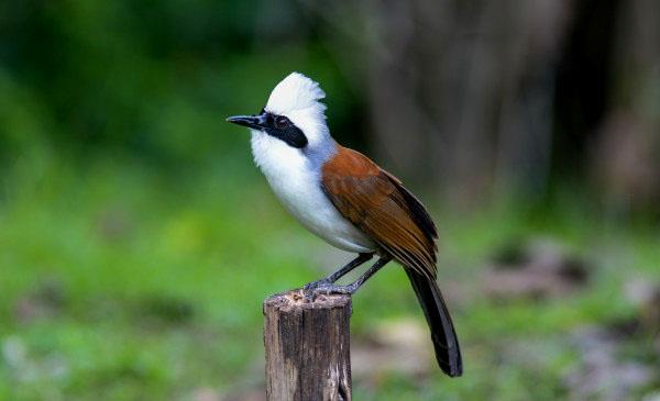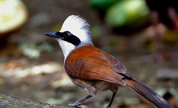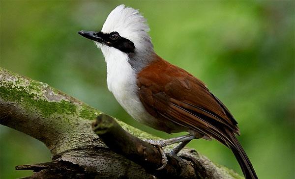 白冠噪鹛:别名,为雀形目、画眉科、噪鹛属鸟类,原产于亚洲东南部,包括孟加拉国、不丹、柬埔寨、中国、印度、老挝、缅甸、尼泊尔、泰国、越南,偶入新加坡。主要栖息于海拔1500m以下的低山和沟谷常绿阔叶林、杂有竹丛的树林以及林下灌丛。1815年命名,共4个亚种。