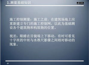 因工地上水准仪的i角可能较大,测量时尽可能使前后视为一直线,主要控制前后视距差(一般为2%-5%,视精度要求而定)。第三,施工放样方法,主要有GPS-RTK卫星定位系统放样,全站仪坐标放样,经纬仪拨角量距放样等。