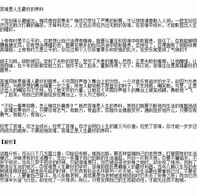 要不断去磨练,在风雨中成长,因为只有这样才会让心中坚韧的花开的更艳丽!而开花时所经历的磨练才是长久生命的保证!2.在风雨中成长时光的沙漏不停的行进,来不及告别叹息,昨日便已卷入时间的长流中旋转着成为回忆,然后一点点透明,最终消失。不知不觉,距离开学时期已有两个多月,在这漫长亦短暂的时间内,我们在紧张的学习节奏中一步步成熟,走向成长的彼岸。