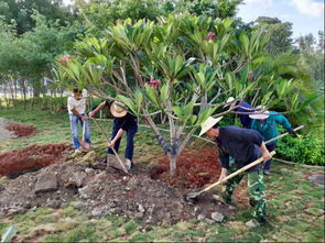 在校园的草地上,同学们一起松土种植树木。老师让我们修剪花树,然后叫我们把花盆整齐地排列在走廊上,整条走廊看起来顿时充满了朝气。