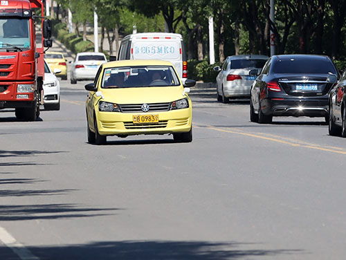 5.按照“一踩(踩离合)二挂(挂一档)三灯(开转向灯)四喇(按喇叭)五刹(松手闸)六视(看后视镜)”的程序,轻轻转动方向盘起步。注意:如果车子停在路右侧,起步时应当开左转向灯看左后视镜,轻轻转动方向盘使车子进入正常行驶车道;如果车子停在路左侧,起步时应当开右转向灯看右后视镜,轻转方向盘,使车子跨过中心线进入正常行驶道路。