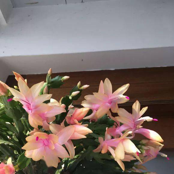 5、蟹爪兰花期的时候要注意避免蟹爪兰受到阳光直射,可移至散射光处养护这样,能够以延长观赏期。