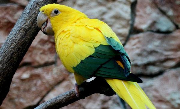 金黄锥尾鹦鹉:别名金鹦哥_金色鹦鹉_金色鹦哥_金色锥尾鹦鹉_巴伐利亚皇后鹦鹉,为鹦形目、鹦鹉科、锥尾鹦哥属鸟类,原产于南美洲巴西东北部的南亚马逊盆地内,主要栖息于热带雨林,尤其偏好沿着水源流过的林地。1788年命名。